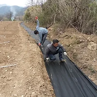 우선 밭 가장자리로 물이 흘러내려 갈 수 있는 도구를 칩니다.